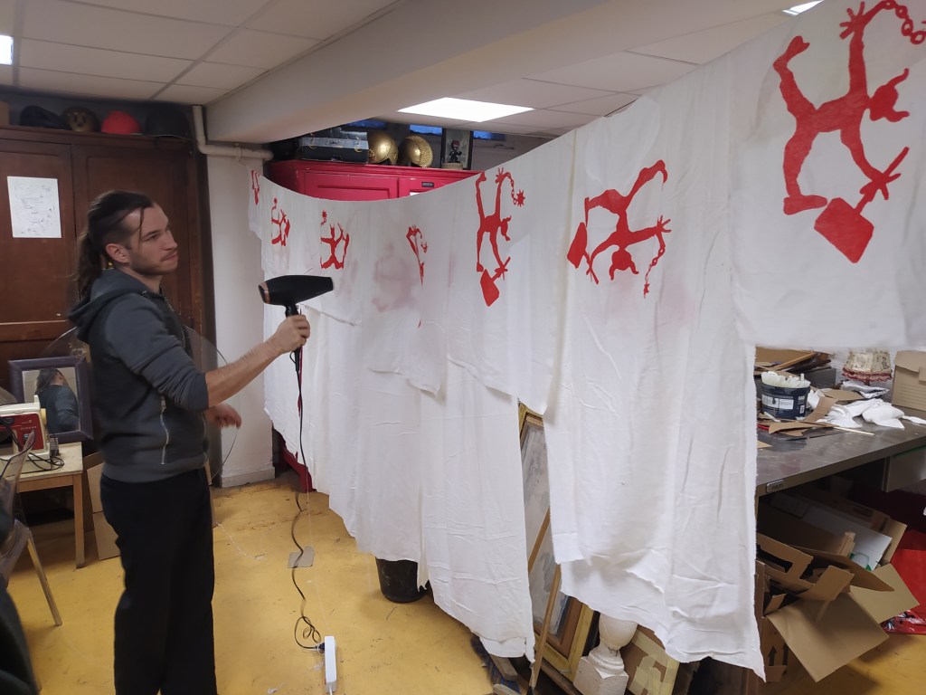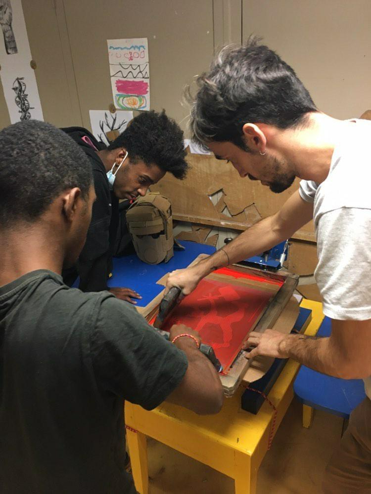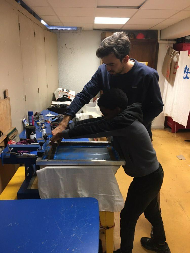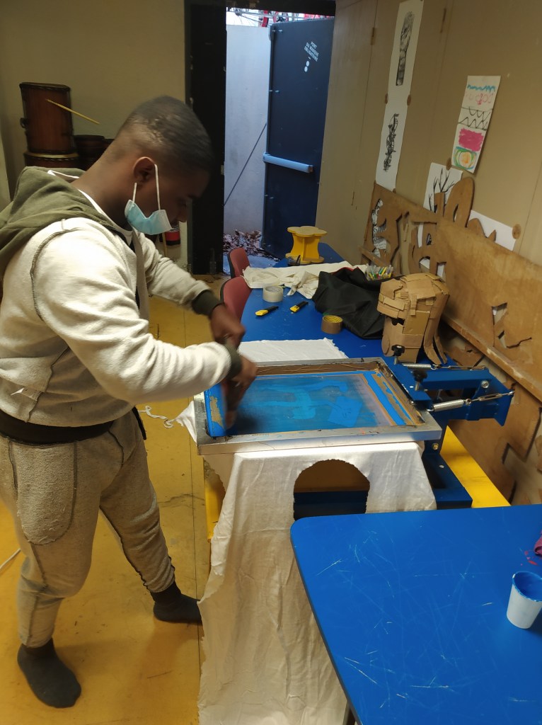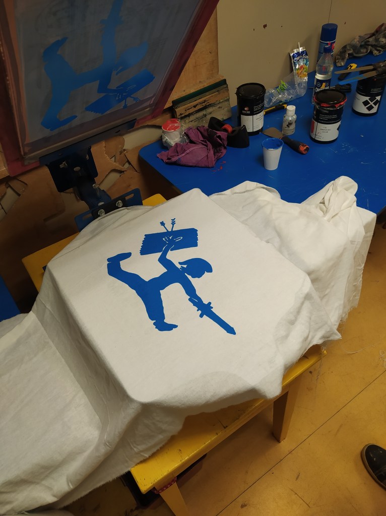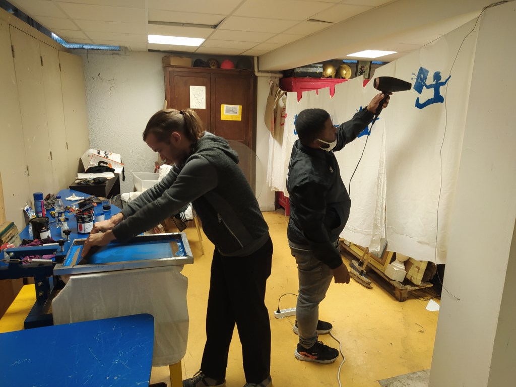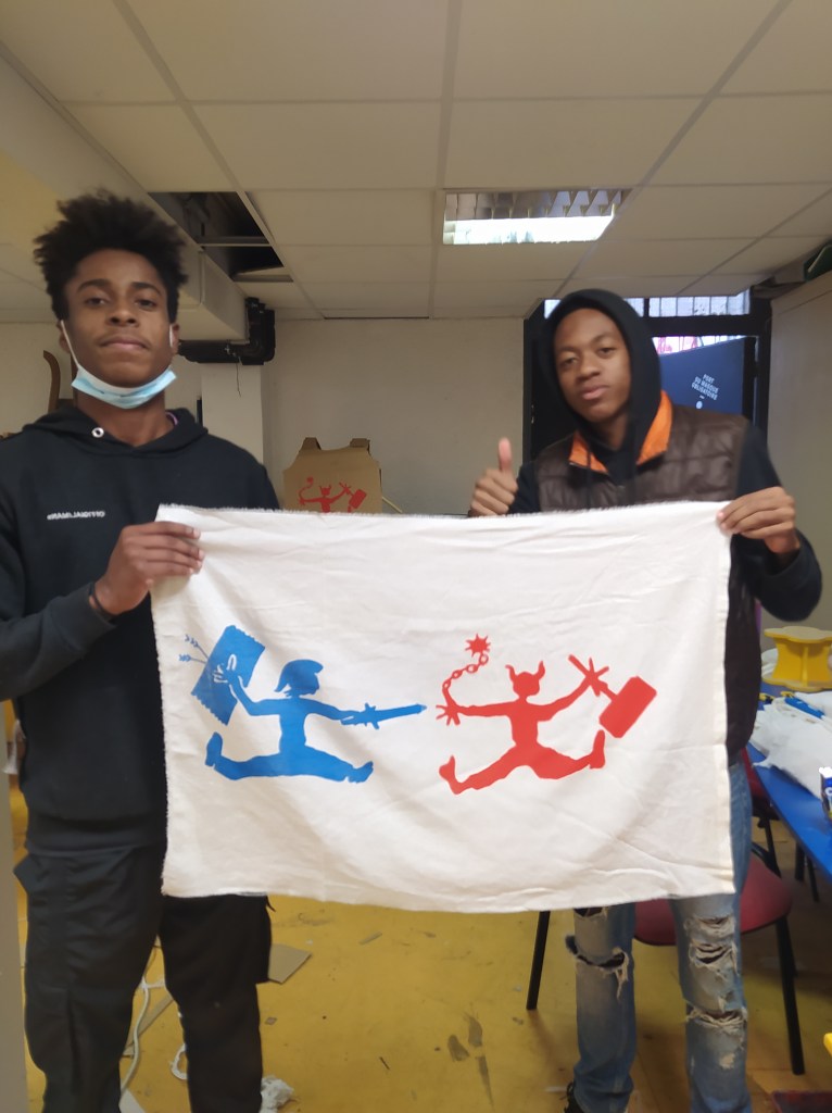 Pour les vacances scolaires j’ai participé à l’aide de mon atelier de sérigraphie mobile à un atelier de confection de costumes de chevaliers organisé par Pierre Combelles au centre social Saint Gabriel. L’idée était de fabriquer des armes et armures en carton ainsi que d’imprimer des plastrons, drapeaux et autres tuniques dans le but de réaliser une rixe chorégraphiée par les jeunes du centre. Retour en images.