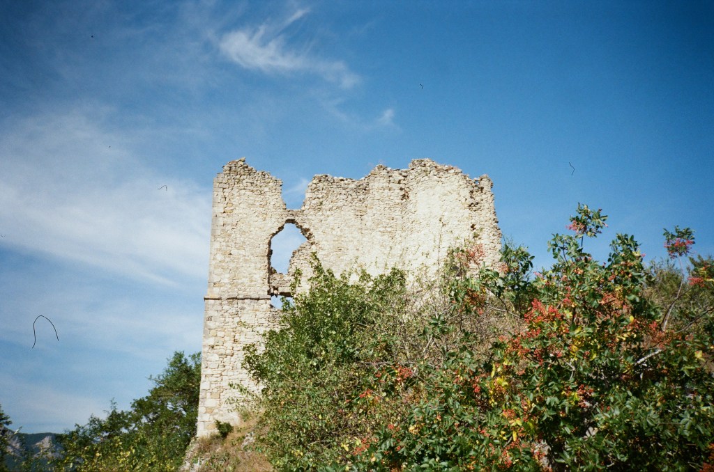 Sur le perron traînent une salière, quelques cadavres de bouteilles et un peu d’huile d’olive. Ce sont les reliques de ce lieu fantomatique dont le gardien imaginaire dort sans doute plus bas, dans le lit de la rivière.