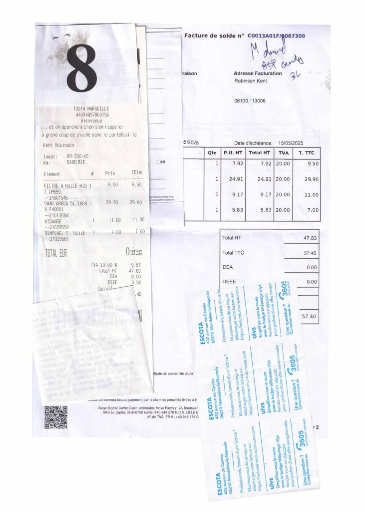 Ce dimanche, en rentrant de la plage avec Marine, sur la bretelle d’autoroute qui part de Bandol en direction de Marseille, j’entends un drôle de râle sous mes pieds qui n’indique rien de bon.
