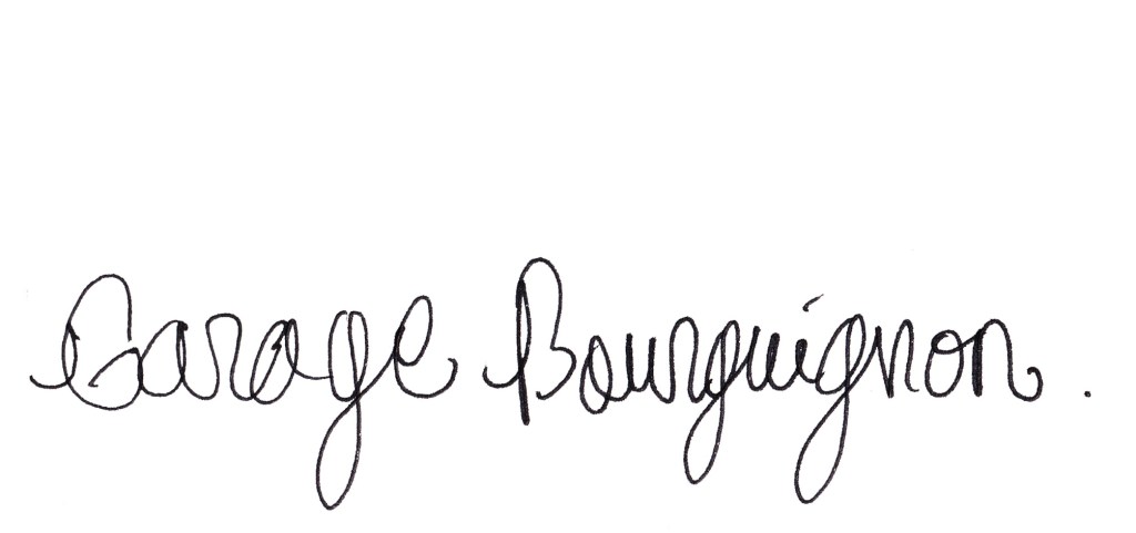 Vu qu’elle roule encore, je décide plus tard dans la semaine de la peindre. J’écris son histoire sur la carlingue, en grosses lettres noires à la glycéro. Cette peinture que je dépose sur le métal, c’est sa tunique mortuaire. Un tissus fait de souvenirs de voyage, de galères sur la bande d’arrêt d’urgence et d’amour.