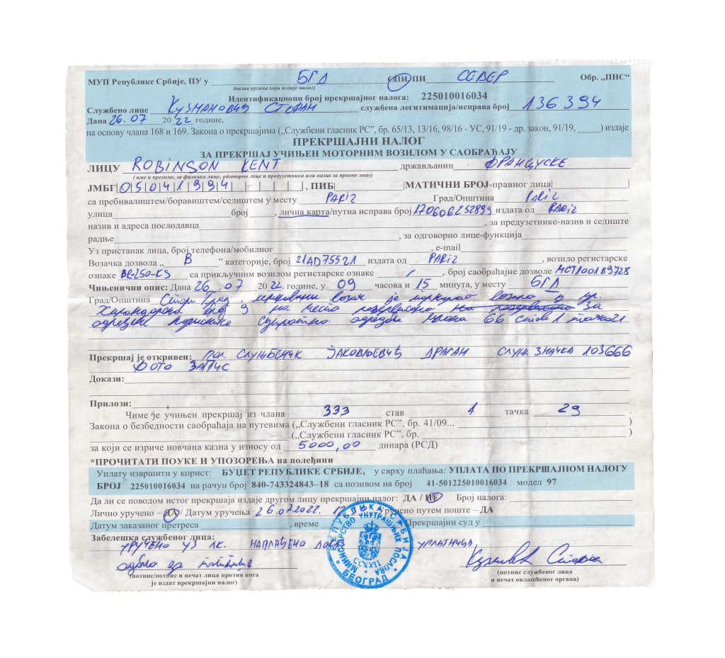 11h. Dans la petite rue, nos trois merguez font bien moins les fiers. Outre le fait que le mal de caboche général laisse peu de place à une réflexion constructive : la BIC n’est plus là. Par chance, la serveuse du bar le plus proche les aide à contacter la, ou plutôt les fourrières potentielles où la voiture pourrait se trouver. Après une grosse suée dans la ville, une rencontre avec des policiers Serbes forts désireux de leur casser la gueule et une amende de 5000 dinars, nos trois compères les trompettes finissent par remettre la main sur leur véhicule de voyage.